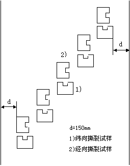 12.1 由于成网、加固、粘合等工艺的不同,在做经向与纬向撕破强力时,其撕裂走向有可能出现某一向不规则现象,甚至有的撕裂走向与切口线成垂直状态,凡遇此种异常情况应在试验报告中注明。