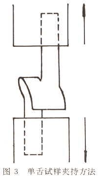 在条形试样中切开规定间距和长度的两个切口,形成以供夹持的舌状试样(见图2)。
