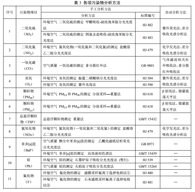 应按表 3 的要求,采用相应的方法分析各项污染物的浓度。可采用连续自动监测仪器进行分析。