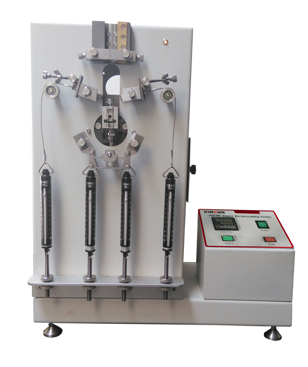 仪器于横向及纵向张力作用下,测试拉链能否承受规定次数的往复拉动操作。试验时本机以等速带动拉链的拉头,作每分钟30次的往复运动,至规定的次数为止。