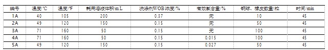 关于洗涤方法,美标的要求是洗涤时先将标准洗涤剂WOB(不含荧光增白剂)和钢球预热至所需的洗涤温度,再将组合试样按照表3中的参数进行洗涤,洗后用40℃水漂洗3次,每次1min,然后放在不高于